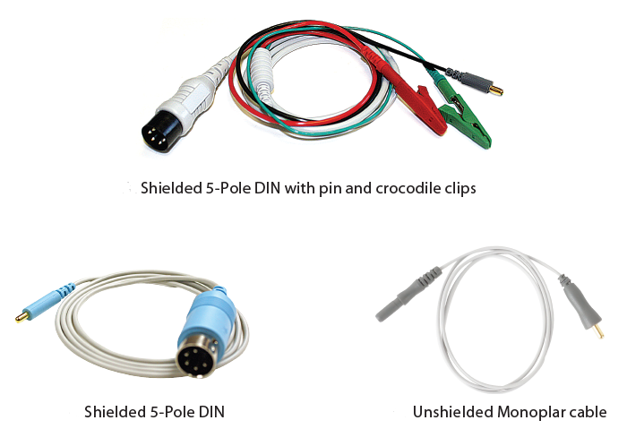 Detachable, reusable cables come in three options. For use with disposable monopolar needle electrodes.